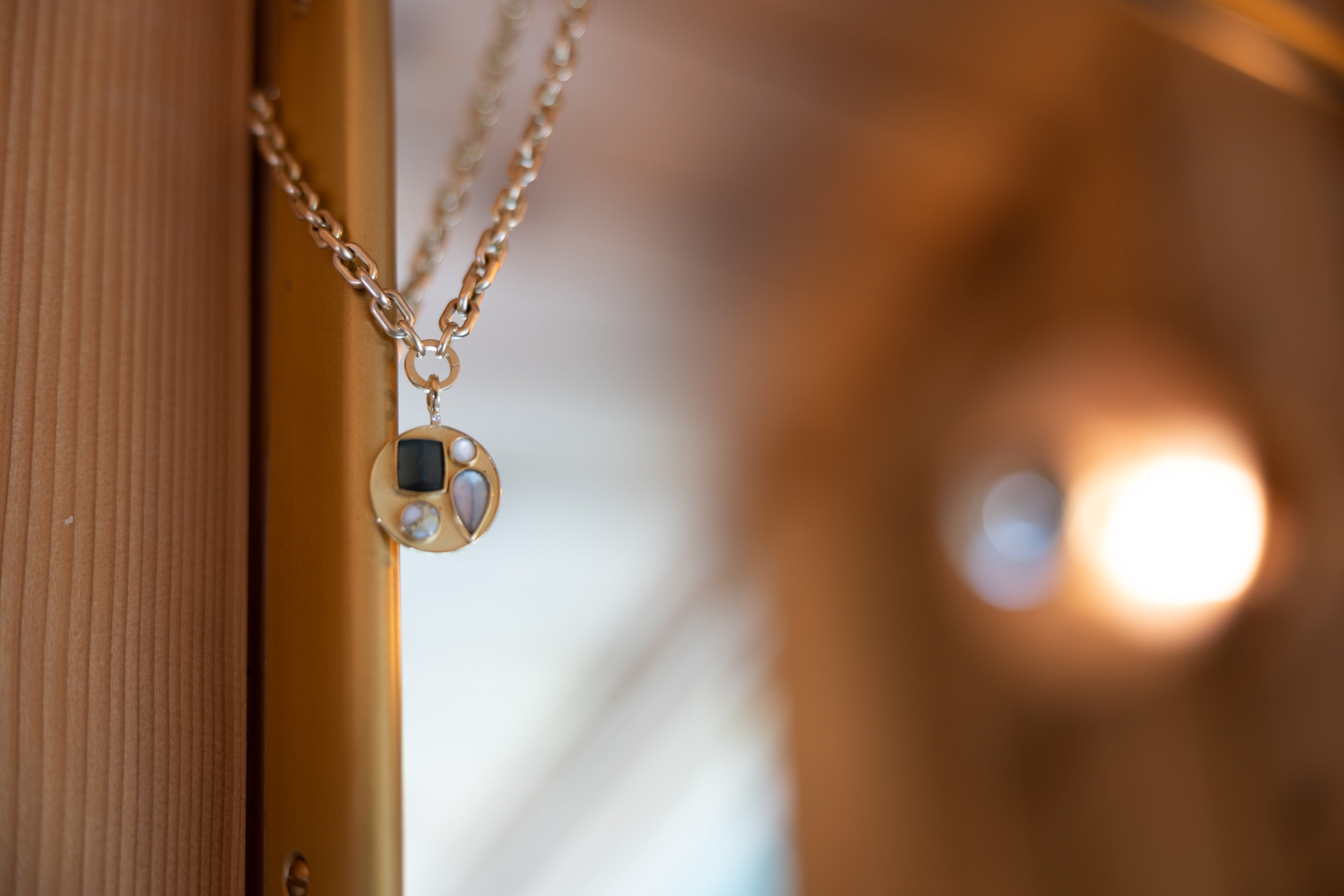 14K Heavy Montana Agate and Chalcedony Confection Pendant
