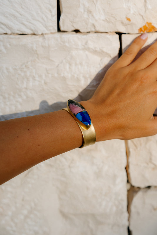 18K (7) Lapis Lazuli Graphic Stack Cuff- XS