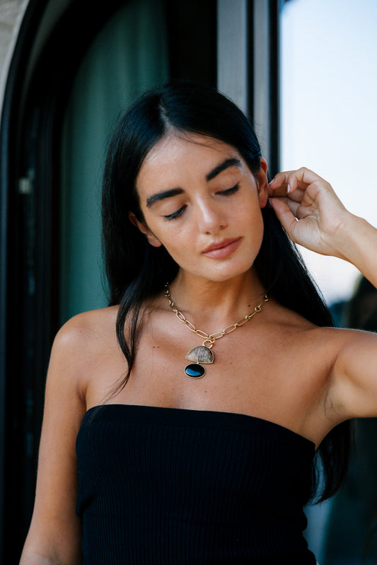 14K Heavy Brazilian Sodalite and Australian Grey Moonstone Confection Pendant